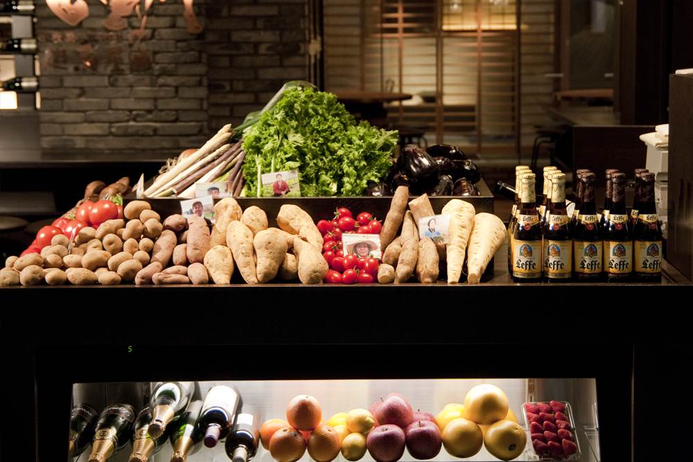 肉匠自豪的牛肉、当季蔬菜和海鲜料理可以铁板烧方式享用