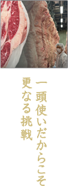 一頭買いすることで様々な部位が含まれ、一頭のカット技術が必要になりますが、格付けにとらわれない考え方で、おいしさを数値化し本来の味や香りを感じられる食べておいしい牛をお客様にご提供するため挑戦を続けております。