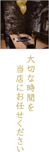 お客様にとって「ここ一番!」という大切な時間を但馬屋でお過ごしいただくために、その時々に応じたサービスを演じ分け、心地よさと安心感を演出いたします。
