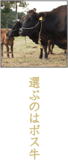 但馬屋では、競りに行く前に必ず農家へ足を運び、どんな状態で育った牛なのかをチェックしています。その決めては、ズバリ!ボス牛