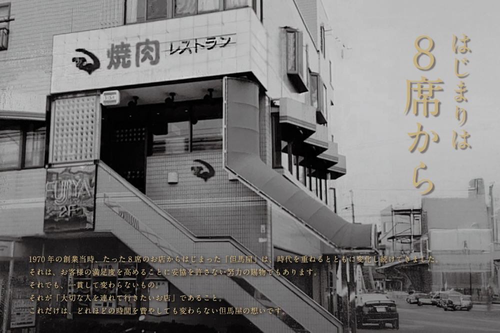 1970年の創業当時、たった8席のお店からはじまった「但馬屋」は、時代を重ねるとともに変化し続けてきました。